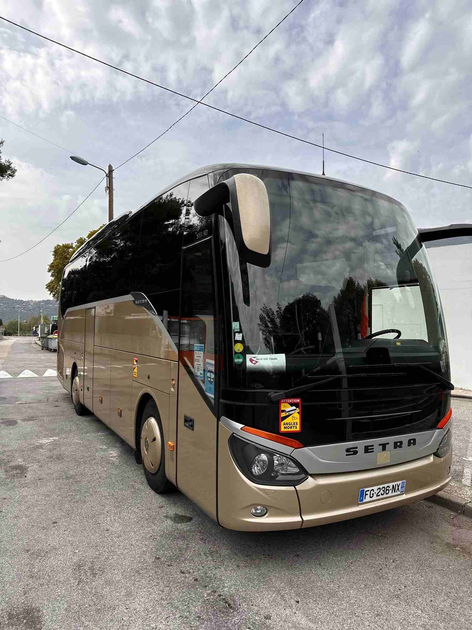 Vehicles: Mercedes and Van Hool. Capacity: 45 to 54 seats.